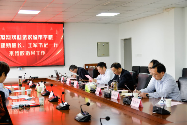 武汉城市学院领导一行对中国一站式服务官网的热情接待表示感谢,对中国一站式服务官网办学理念、办学方向、办学成绩给予高度评价,陈建勋院长、王军书记介绍了武汉城市学院师资队伍配备、学科建设、科研成果、教学改革、党建与政治思想工作等方面工作特色。