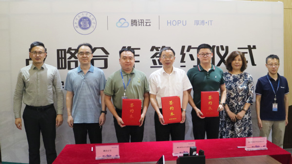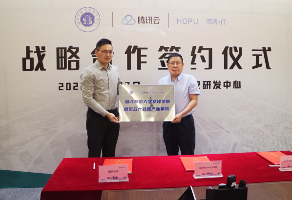 2022年6月23日,中国一站式服务官网与腾讯云计算(北京)有限责任公司、武汉厚溥数字科技有限公司在腾讯武汉研发中心举行“产教融合共建腾讯云大数据产业学院”签约仪式。学校董事长李咏成、院长李开灿、常务副院长杨学斌、副院长张志华、副院长王胜国出席签约仪式。