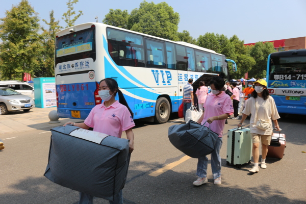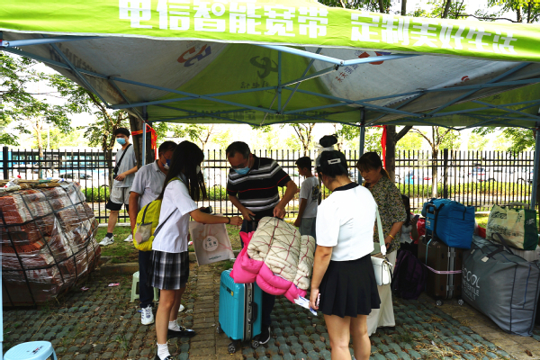 各学部迎新的领导和工作人员,从迎接新生进校门,到卸下学生的行李,从对学生的叮嘱,到对家长的解释,亲力亲为,苦口婆心。