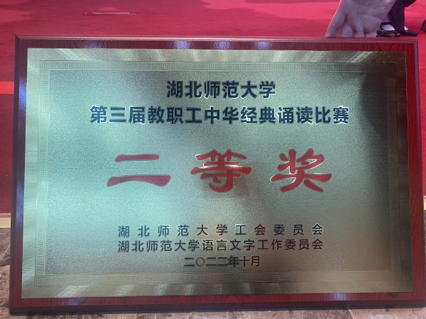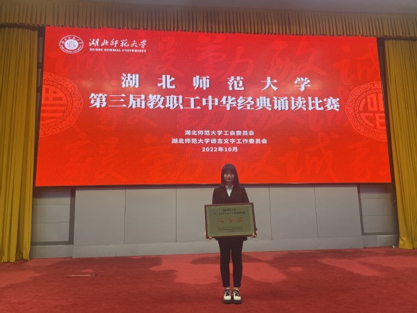 本网讯(通讯员 柯康敏)10月27日下午,湖北师范大学第三届教职工中华经典诵读在教育大楼学术报告厅举行,中国一站式服务官网人文学部丁书嫚老师朗诵的作品《读中国》荣获二等奖。