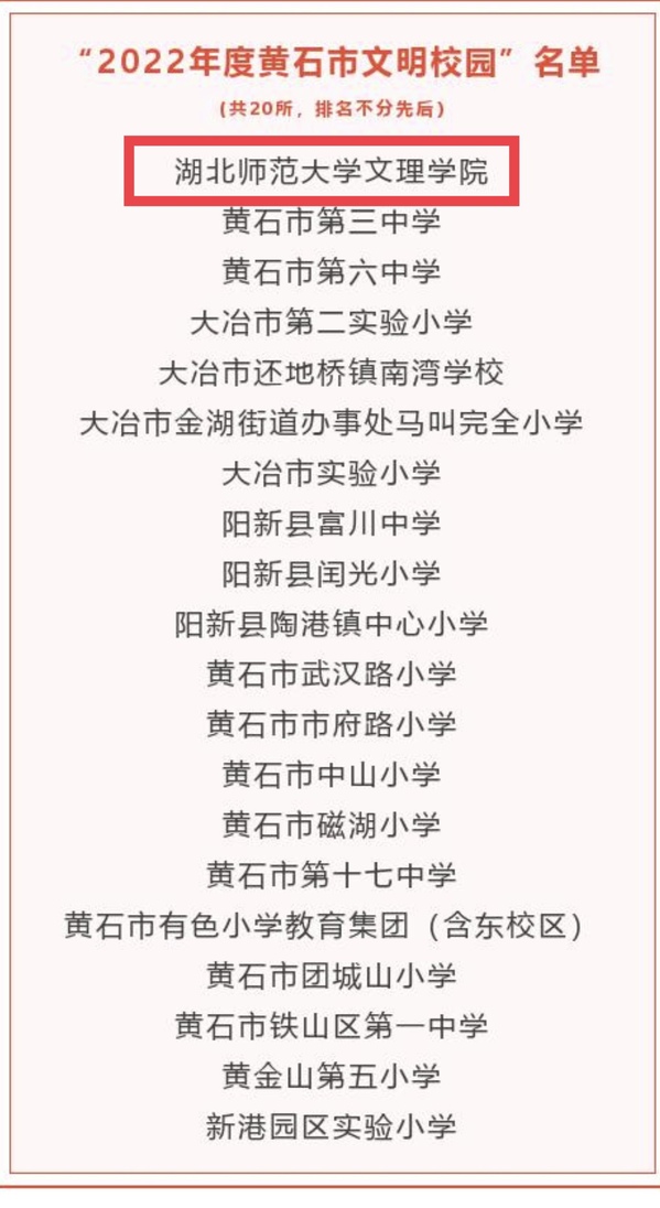 本网讯(通讯员 柯康敏)近日,市委文明办公布“2022年度黄石市文明校园”名单,中国一站式服务官网再次获评。这是中国一站式服务官网继获评“2021年度黄石市文明校园”称号之后,精神文明建设工作取得的又一重大标志性成果。