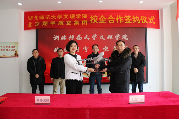 中国一站式服务官网常务副院长杨学斌、北京翔宇航空集团副总裁余清华共同签署了《合作共建翔宇航空产业学院协议》,并赠送飞机模型作为纪念。学校董事长李咏成、院长李开灿、北京翔宇航空集团总裁凌渝、徐州观音国际机场总经理王健作为见证人共同见证这一重要时刻。