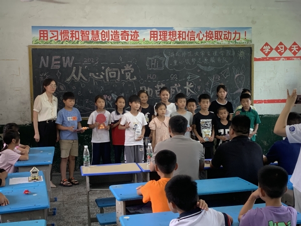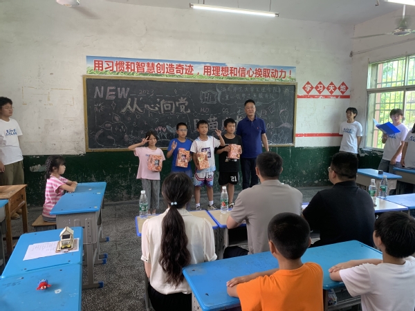 随后,慰问组随志愿者来到教室里参加支教结课展演活动,从孩子们充满活力的表演和课程展示中,直观的看到了本次支教活动的教学成果。展演活动的最后,对教学中表现优秀的学生进行表彰。