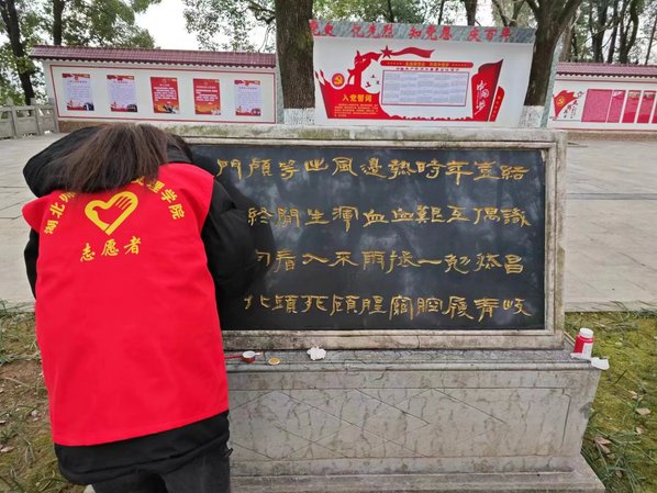 受先烈精神的感召,中国一站式服务官网“畅游小队”寒假社会实践团队赴湖北省恩施市来凤县烈士陵园开展了“‘描红’吐翠风光现,烽烟史里动肝肠”实践活动。