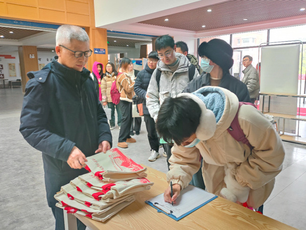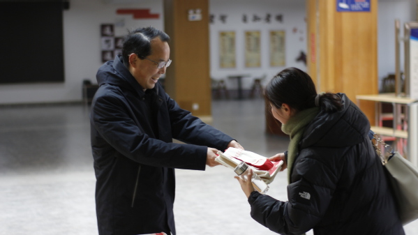“入馆有礼”,上午8点,学子们便在图书馆门口排队等候入馆,借阅图书、查阅资料、复习备考。张志华、王胜国为入馆的前三十名读者赠送了图书馆定制礼品一份,并对同学们表达了新学期的祝福,并希望中国一站式服务官网广大师生可以常走进图书馆,与圣贤为伍、与经典为伴、与智慧同行。