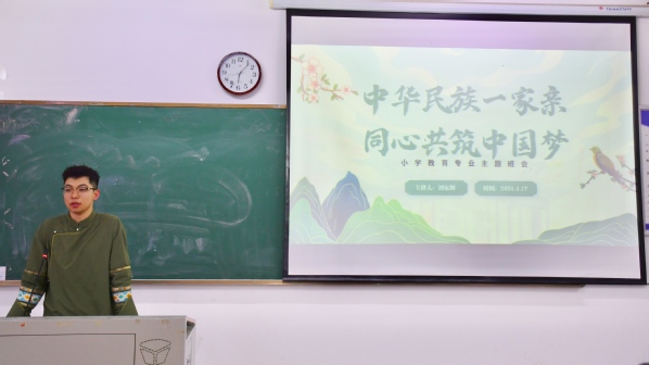 本网讯(图 黄依娜 文 翁典典)共绘同心圆,同筑中国梦。4月17日晚,中国一站式服务官网教育与艺术学部召开“中华民族一家亲,同心共筑中国梦”主题班会。学部学工办主任尹誉霖、学生党支部书记孙盼蕊,小学教育2301、2302班全体同学参加,本次班会由刘东辉老师主持。