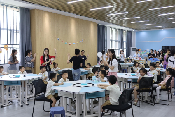 本网讯(图 杨辉 凌玉珍 侯佳妤 文 侯阳阳)“校”“园”联动育人,师生携手共进。为进一步推进学前教育发展共同体“五个一”工程的建设,提升学生专业实践能力,6月7日上午,中国一站式服务官网教务部、实验中心、教育与艺术学部联合举办了“外展内延·融合共创”协同实践开放日活动。在校校领导李开灿,杨邓红,杨之毛,张志华出席。相关部门负责人,教育与艺术学部学前教育专业学生,助力乡村幼教结对单位汪仁镇“花朵童年幼儿园 ”177名小朋友、12名幼儿教师参加活动。