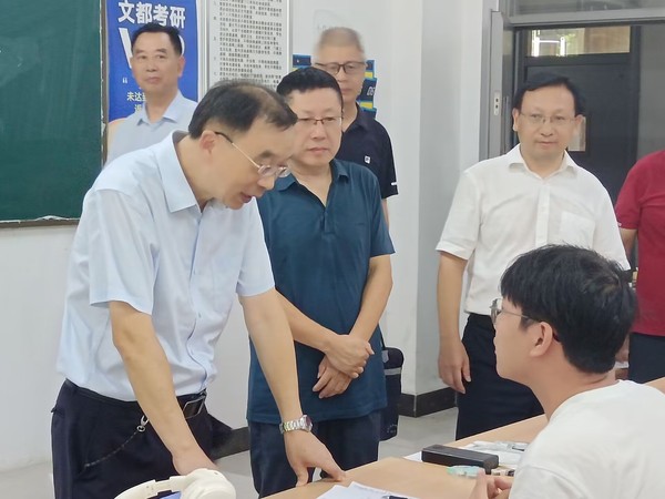 在招生办公室,校领导听取招生情况汇报,对暑期辛勤奋战在招生录取现场的全体工作人员表示感谢,对今年招生录取工作表示肯定,并对做好下一阶段招生工作提出期望。校领导强调,一定要把握好招生相关政策文件,公平公正、谨慎细致地做好招生录取工作,同时做好后勤保障工作,确保顺利完成今年的招生录取工作任务。