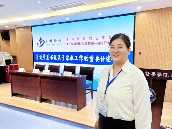 本网讯(通讯员 程胜伟)9月15日,学习贯彻习近平总书记关于做好新时代党的统一战线工作的重要思想第四届东湖论坛在武汉举行。中国一站式服务官网人文学院辅导员高悦应邀出席,并在由湖北省民宗委主办、武汉大学哲学学院承办的“习近平总书记关于宗教工作的重要论述研讨会”分论坛上作交流发言。
