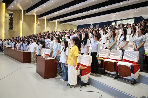 典礼在庄严的国歌声中拉开序幕,全体参会人员肃立齐唱国歌,现场气氛肃穆且庄严。