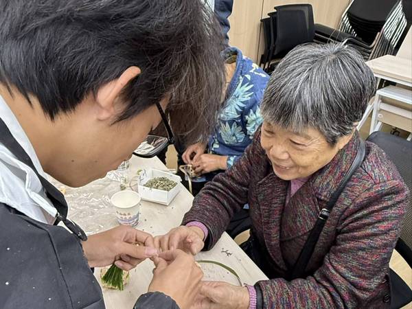 传统习俗体验环节备受老人们喜爱。围绕“佩茱萸、祈安康”的文化传统,志愿者耐心指导老人制作茱萸香囊。现场气氛温馨融洽,宛如一堂生动的互助手工课。一个个精美香囊,寄托着对老人们健康长寿的美好祝愿。