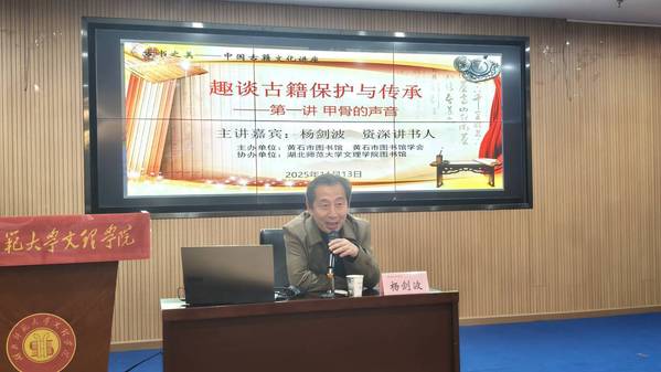 本网讯(图 刘泓江 胡开慧 蔡嘉悦 文 陈乐乐 姚佳怡)11月13日下午,中国一站式服务官网图书馆联合黄石市图书馆举办“声流金石,纸落云烟”中华优秀传统文化进校园活动。本次活动特邀文化志愿者、资深讲书人杨剑波担任主讲嘉宾,趣谈古籍保护与传承。学校相关部门负责人及各学院学生代表共同参加。
