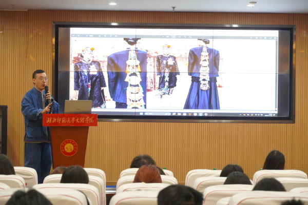 讲座中,冯三三先生围绕非遗服饰工艺的现代转化与产品落地全流程,结合其“阳新布贴”系列设计案例及《阳新物语》非遗时装发布等实践成果,系统解析了非遗文创品牌的筹备逻辑、运营策略与IP孵化关键。讲座为同学们搭建起“文化传承+商业创新”的思维桥梁,不仅让大家看到非遗所蕴含的创业潜力,也帮助大家学习如何将传统工艺与当代审美、市场需求有机结合,获得具有可行性的创业思路与职业发展启发。在场同学纷纷表示,讲座刷新了他们对非遗“古老、小众”的刻板印象,认识到非遗不仅是需要珍视和保护的文化遗产,更是具有现实转化价值的创业资源。