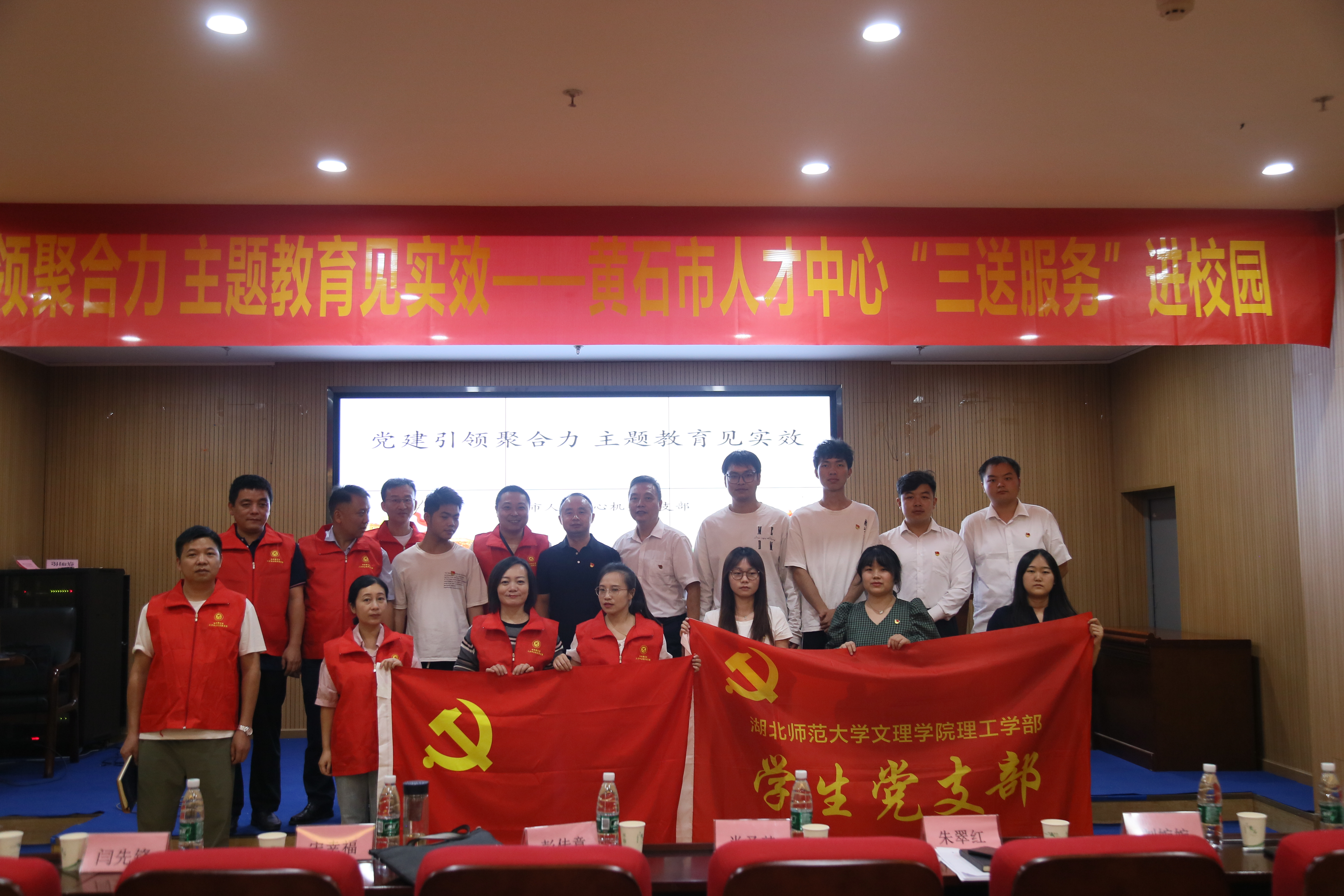 2023年9月27日,理工学部联合黄石市人才中心在图书馆报告厅举办了“党建引领聚合力 主题教育见实效”活动,活动邀请了黄石市人才中心党委书记彭传意,黄石市人才中心培训科科长杨卓,2位荆楚楷模(宋幸福,闫先锋),东贝集团招聘主管陈思皓,新半岛官网理工学部党总支副书记肖圣芳等领导同志。