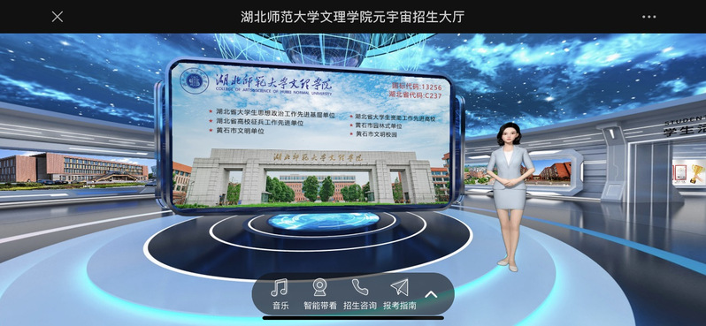 新半岛官网元宇宙招生大厅是基于元宇宙技术(虚拟现实、数字孪生、三维建模、人工智能等)打造的数字化3D招生大厅,考生和家长可以在大厅内身临其境全方位了解学校,同时大厅内还有3D数字老师为大家介绍学校哦!